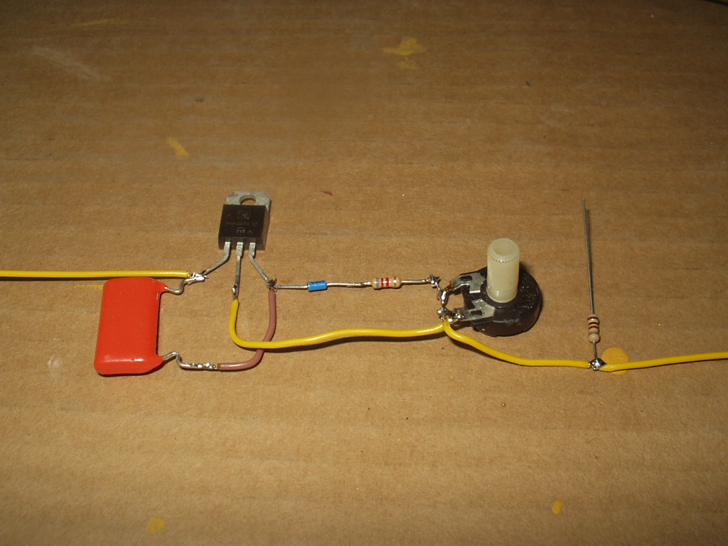 foto 8 triac condensador diac resistencia y potenciometro y coneccion entre condensador diac potenciometro cable de salida y resistencia 100 omios