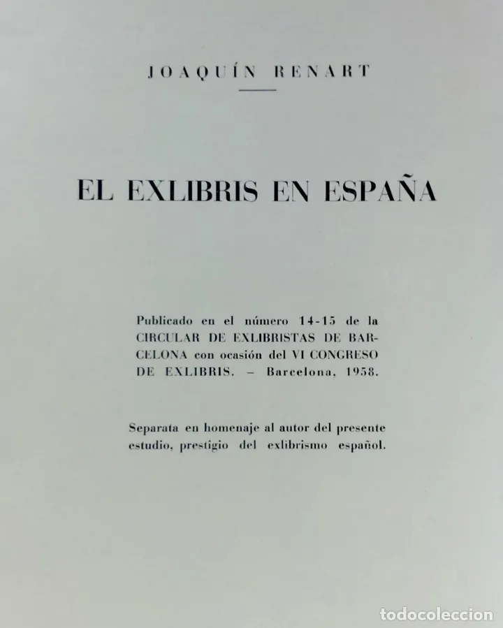 Otras facetas artísticas de Joaquim Renart fueron la de dibujante de ex-libris, en sus años de juventud, y la de coleccionista de arte.