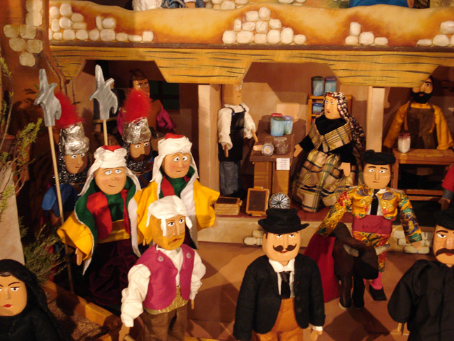 El Belén ocupa un espacio de 7´5 metros cuadrados y una altura de 1´5 metros. En este espacio se distribuyen las más de 60 figuras que componen la representación, 38 figuras humanas y el resto de animales y edificios, entre los que destacan la Iglesia y la casa del ventero.