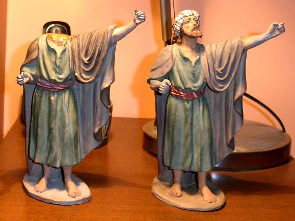 Amigo ayora, evidentemente no estamos "a años luz" nadie de nadie. Solamente somos aficionados iguales compartiendo experiencias, mucho más cuando lo que comentamos son temas de gustos o criterios. La verdad es que me parece que tu criterio es muy acertado, y que no deberíamos alterar las figuras... pero... lo único que puedo decir en mi defensa es que es la práctica habitual dentro del belenismo y que la terracota es tan frágil...