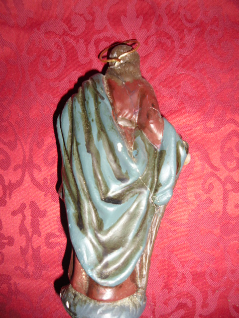 el problema que le veo, es que es bonito, pero tiene un acabado tosco, con sombras a base de pinceladas gruesas de color negro. tambien. otro problema que me da, es que aunque los conservo liados en papeles de periódico, se pican y casi todos los años tengo que darles una puntadica con pintura. asique, he pensado repolicromarlos. no se si inspirarme en los mismos colores que tienen pero bien aplicados, buscar fotos de los originales e intentar copiarlos, o puesto que es una copia mala... invente yo mi propio grupo.