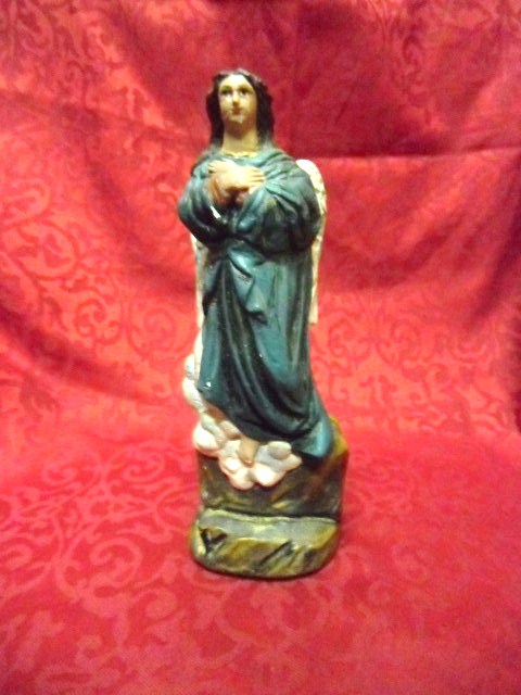 las figuras son de escayola, he visto que son réplica de un grupo original de artesano... y el angel es un añadido al grupo, por que es el mismo que me vino en un kit de la anunciación a los pastores que compré en 2004 y pinté.