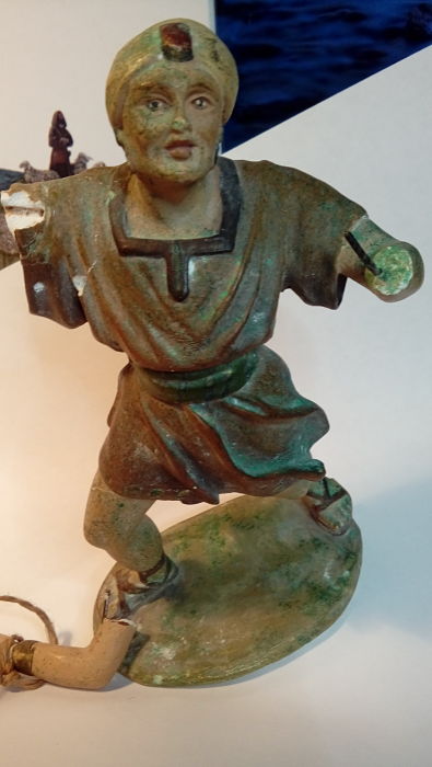 Me quedaba pendiente restaurar el tercer Page de la Cabalgata de Ramon Bretcha.Como en los otros dos tenia roturas de brazo, faltas y mucha suciedad, incluso de pintura verde en spray por mal cuidado de las piezas.
