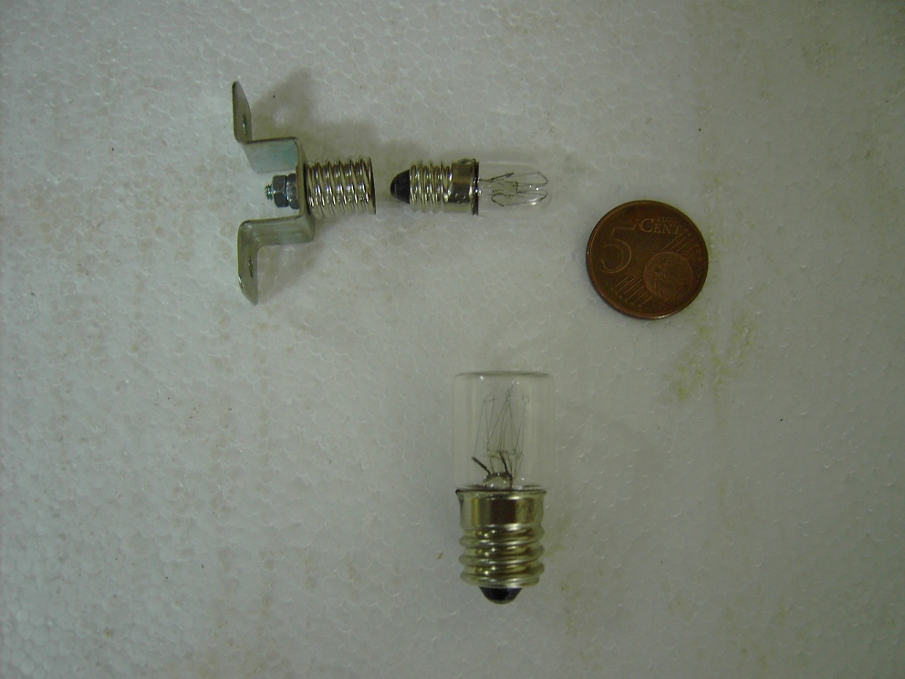 Cuco, la lámpara superior es de 230V - 5W y la pequeña 230V - 2W.