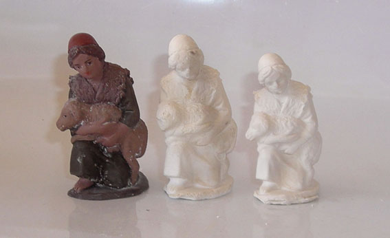 Ahora la experiencia, cogí una figura mia de Mayo de 16 cm.y le hice un molde de silicona blanca normal de barra,(como siempre de los chinos por su precio) le di una capa, espere su secado y otra y otra, hasta llegar a 1 cm. de grosor mas o menos, saque la copia y, perfecta para pintar, me dije -es barato y facil el procedimiento -y pintandola de otros colores o transformándolas un poco ya tengo una mas, se han pasado tres meses de aquello, el jueves cogi de nuevo el molde y vi que habia cambiado pues era mas bajito y mas delgado,apenas unos milimetros,he hice otra copia,y ahi mi sorpresa cuando la saque habia cambiado de talla,media 14 cm. escasos,eso si perfectamente proporcionada,y lo mismo con otras dos de Mayo tambien en 7 cm. ahora 5´5 cm. asi es que si quereis empequeñecer vuestra coleccion ya sabeis,os pongo las fotos orientativas.