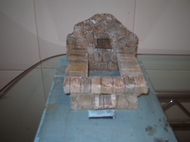 - La fuente anterior con rebosadero, que Juanjo está elaborando y que nos ha mandado fotos, tambien totalmente de poliestireno de 2cm, sí está impermeabilizada en la parte que continene el agua y su rebosaderto y su parte inferior, como ya conté.