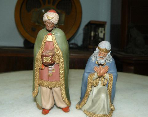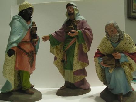 Aquellas casualidades de la vida. Un dia me encontre un grupo de reyes de 24cm más o menos. Otro día me encontre un grupo de reyes de 12 cm. Los tengo en casas distintas y hasta este verano no me he dado cuenta de que son "fotocopia reducida". Creo que son de Castells, pero de un molde antiguo. De qué época deben ser?