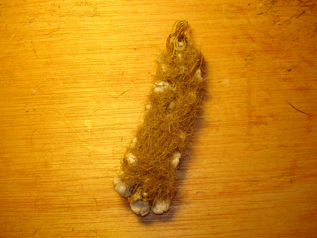 1- El soporte de la ristra puede llevarse a cabo con infinidad de materiales; en realidad no se ve, por lo que puede utilizarse lo que sea como soporte. Se proponen dos alternativas, el cordel y el cáñamo ( 20 ). En nuestro caso vamos a utilizar cordel.