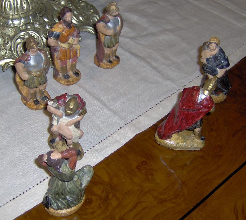 Bueno, simpelemtne comentaros que estas figuras, tienen muchos muchos años, se pusieron en el belen de la AGA unos años, y ahora tengo el privilegio de tenerlas yo, son figuras, que pesan poco y son muy muy delicadas, pero mi gusto y la escena que quiero representar, me valen, aparte de la calidad sea buena o mala, tienen un SENTIMIENTO ESPECIAL, muy grande que se la otorga su siempre suyo dueña.