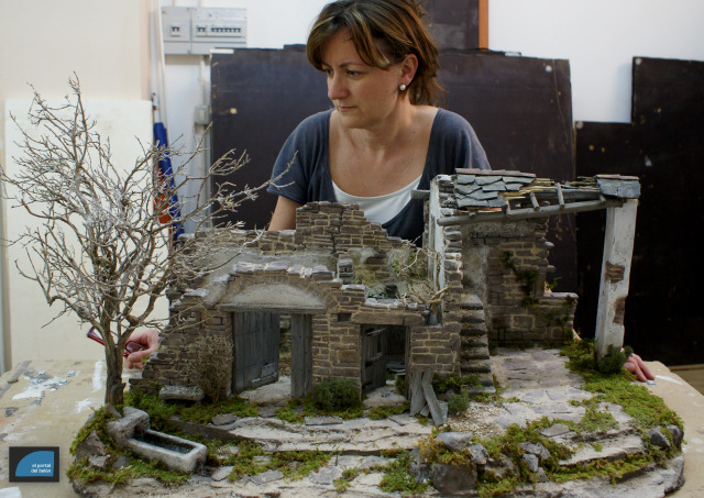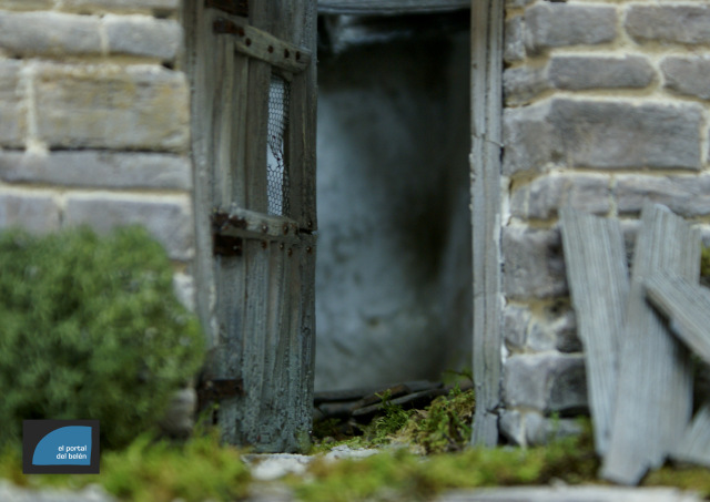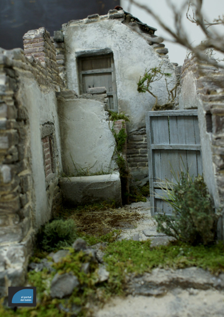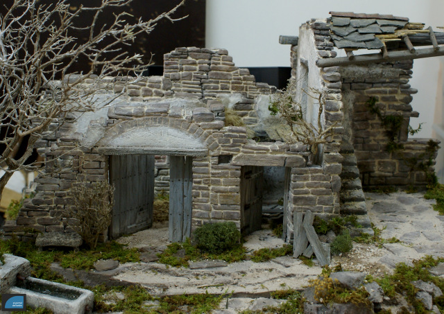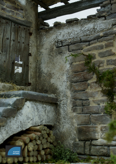 Este trabajo está basado en las edificaciones del Sobrarbe aragonés. Tiene unas medidas de 75cm x 50cm. Está realizado par figuras de 13cm.