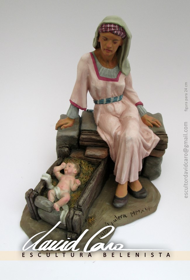 Os dejo fotos de un conjunto en 24 cm. Piezas a palillo, en terracota y policromadas al óleo.