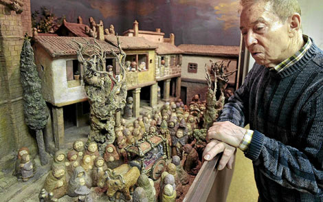 Ayer estuve en Salamanca y pude ver dos montajes verdaderamente excepcionales. En la Sala de Caja Duero situada en la plaza San Boal (junto a la calle Zamora) la exposición titulada "Descubriendo el belén", una colección de belenes de José Luis Mayo Lebrija, en la que se pueden ver varias composiciones y escenas con gran cantidad de figuras a palillo. Sala Caja Duero. Pza San Boal De lunes a domingo y festivos:de 11.00 a 14.00 y de 18.00 a 21.30 h Caja Duero tiene editado un pequeño tríptico
