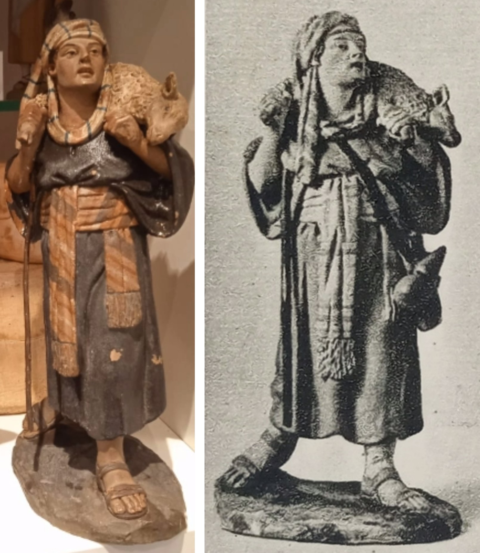 De alguna conversación 'whatsappiana' con Antoni y de comparar detalles en las busquedas belenísticas sin retorno...otra comparativa con imagen de la figura del mismo molde de la lámina de Masdéu de la obra principal de Joan Amades El Pesebre edición de 1935.