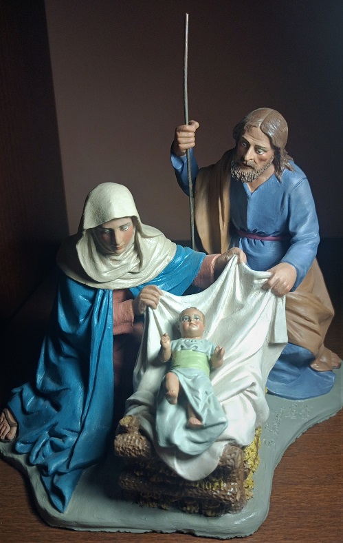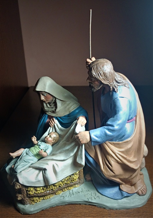 detalles curiosos del recién adquirido e impresionante buen pastor como el cayado, posición del cordero o bolsa y cantimplora...muy pensados a la hora de realizar el molde.