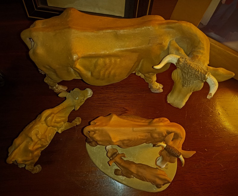 Comparativa de cabras a partir del molde original de Masdéu. Masdéu vía Pruna, Carratalá y Daniel. Una curiosidad la Masdéu/Pruna completa en barro, Carratalá cuernos y patas en plomo y orejas hojalata y finalmente Daniel todo en plomo.