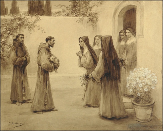 Por último, el mismo San Francisco la condujo a la Iglesia de San Damián, en las afueras de Asís, donde ella nació. Allí el Señor, deseoso de amor y culto perseverante a su nombre, le asoció muchas compañeras.