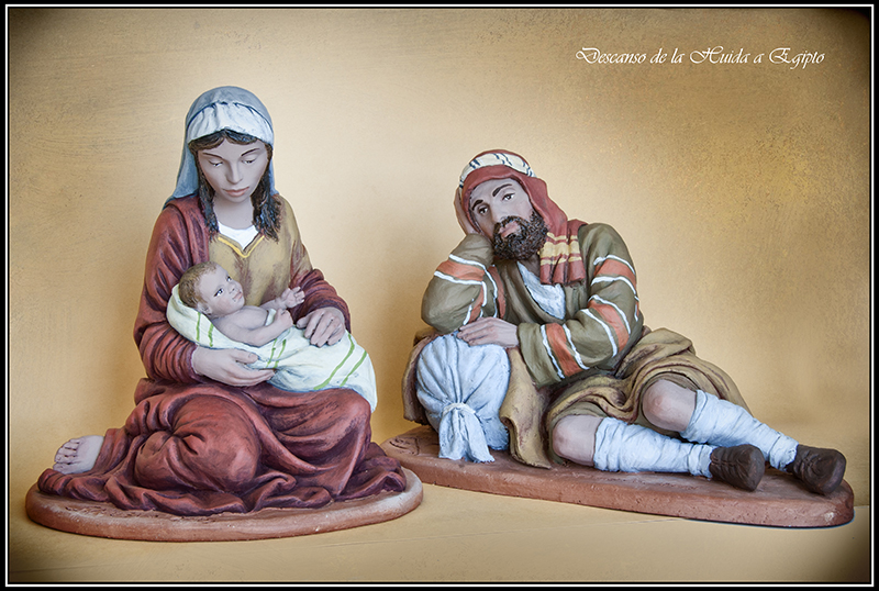 "Descanso de la huida a Egipto" Figuras de serie de 27 cms. Terracota acrílico