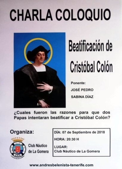 La Gomera, José Pedro... y "el santo" Cristóbal Colón, te esperan el 3 y el 7 de septiembre. Pues sin duda, el marino del siglo XV, es el personaje más determinante en la difusión del catolicismo por el Nuevo Mundo; sin la hazaña de su descubrimiento bajo la tutela de los reyes de España, Isabel y Fernando, hoy la realidad religiosa allí sería muy diferente. Y este artista y estudioso canario, tras una laboriosa labor de investigación y de recopilación de datos, nos descubre en su nuevo libro toda la historia por la que Colón debería de estar en los altares.