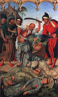 Un día, mientras está cantando sus salmos en una isla, cerca de Fischausen, es derribado por un terrible golpe en la espalda que recibe como un feliz presagio. "Poco, a la verdad, es esto —exclama levantándose—, pero, por lo menos, he merecido recibir un golpe por mi Crucificado."