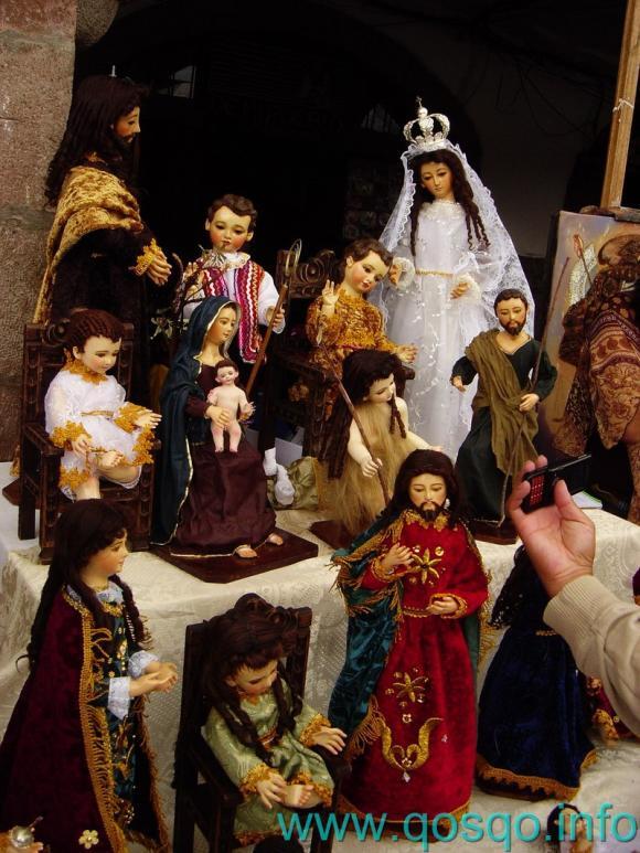 Los Cusqueños acostumbran « hacer nacer al Niño » y buscan en el Santurantikuy, la feria de imágenes, cuanto necesitan para el arreglo de sus pesebres, belenes o portales. Encuentran desde ramas de eucalipto, molle, quewña, helechos, cardos y achupallas, hasta pastores y una gran variedad de figuras bíblicas y andinas. Por supuesto que los imagineros del Niño Dios son los más vistos, porque los presentan en varios tamaños, con los brazos abiertos, dormido sobre un bracito, llorando porque se le clavó una espina por correr en los campos, luciendo trajes de terciopelo bordado, de tela encolada y policromada.Casi todas las imagenes son de pasta de arroz con dientes de pluma de ave y ojos de cristal y pelo natural,hacen Niños Jesus "Manuelitos" asi les llaman y hacen figuras de la Sagrada Familia,Virgenes Maria y San Jose,Vestiditos...