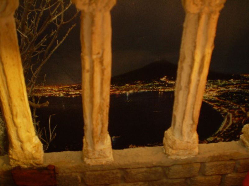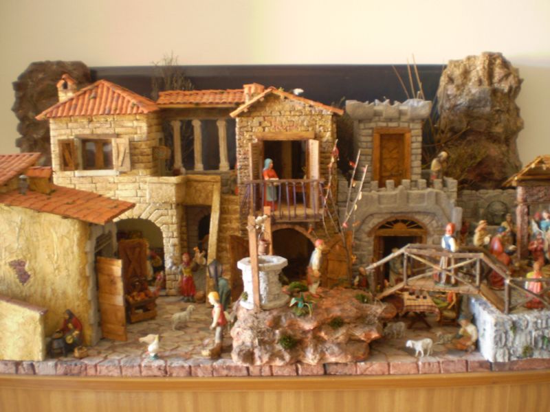 mi belén representa un imaginario escorzo de un burgo situado sobre el Monte Faito o sea el monte predominante del costero sorrentina, de los escorzos se entreve en efecto una vista nocturna del golfo de Nápoles y mi querida ciudad nativa o sea Castellammare di Stabia.