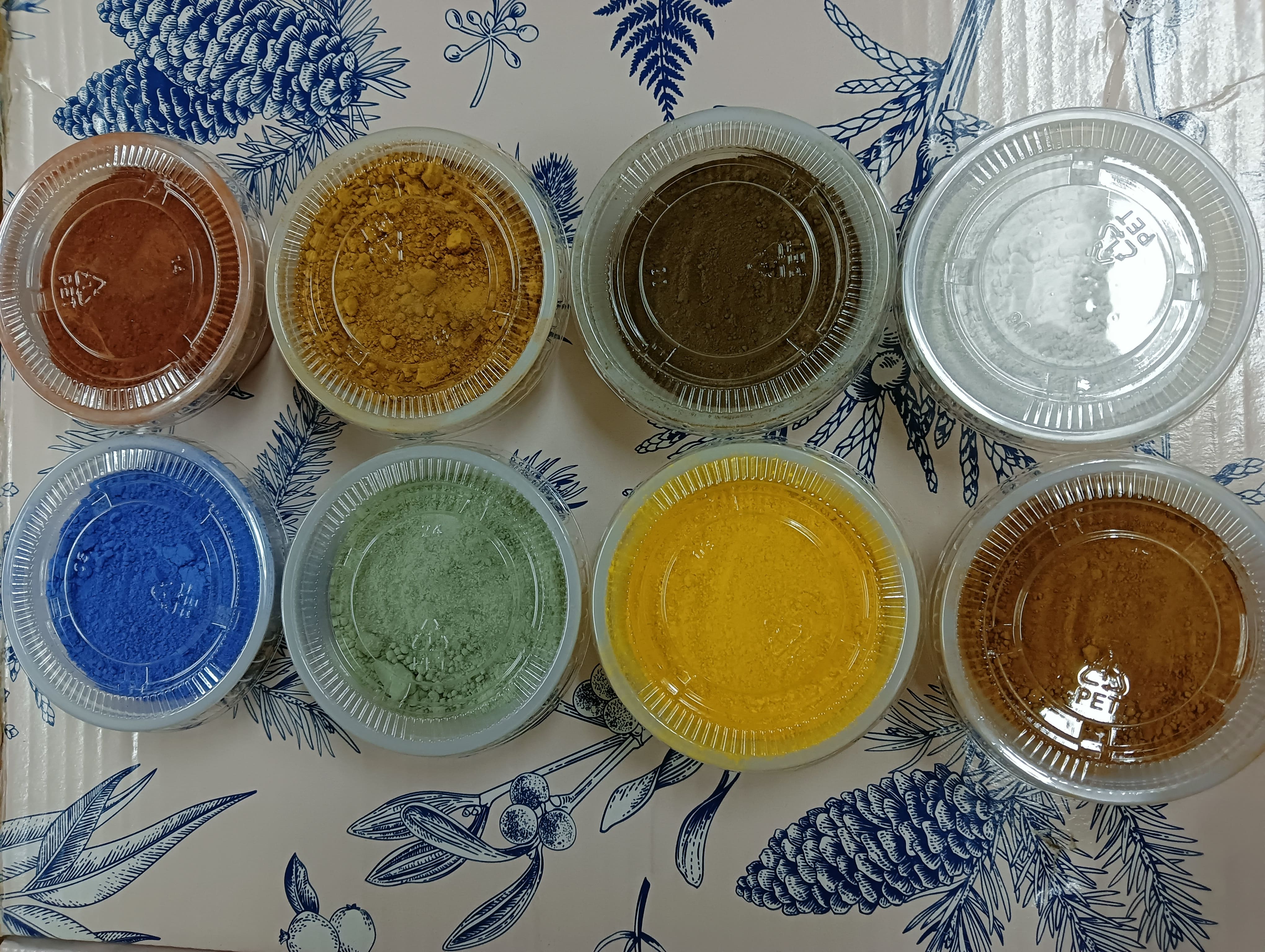 Se venden tabla de colores de pigmentos en polvo en tarros de 50 gramos. Los colores que se venden son: