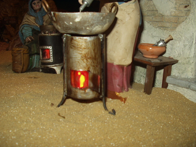 El pintado del anafre es simplemente pintura de minio plateado y cuando esta seca le paso un trapo untado con betun de judea simplemente
