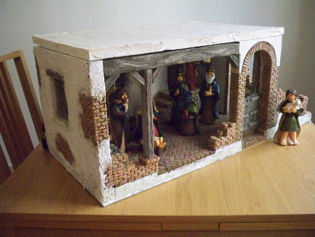 Aprovechando unas figuras que tiene de 18 cm, muy divertidas, le he hecho un pesebre para que tengan, por fin una casa, donde pasar las Navidades.
