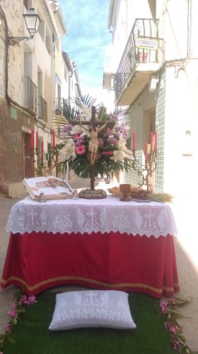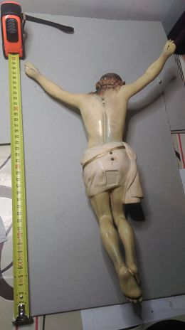 Tienes razón Jerenfer, lo que ocurre (ademas de ser aprendiz en el foro) es que cuando lo desatornille de la cruz, observé debajo del desconchado de la misma que eran palos de madera cubiertos de escayola y de ahí mi confusión, e ilusión de que fuese de madera. de todos modos me fue gratificante reconstruir el dedo con cola y escayola al igual que los desconches y luego le puse una peana para sujeción y apoyo sobre la mesa de Corpus que pusimos en mi calle del pueblo. adjunto foto