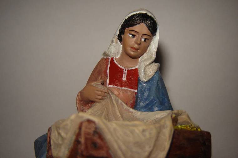 Aquí os dejo unas fotos de la Virgen pintada con óleos. he de decir que es la primera vez que me he decidido a pintar una figura con óleos y que, realmente, la figura me ha quedado mucho mejor que en lo que se ve en las fotos. Y... ¡aún no está acabada! Seguramente os fijareis en que se me ha ido un poco el pincel... Solo he pintado en traje azul, la cuna, el velo, un poco los ojos y el pelo, y los adornos del traje rosa (banda roja en el brazo y en el pecho). Ya repintaré alguna más durante el año...