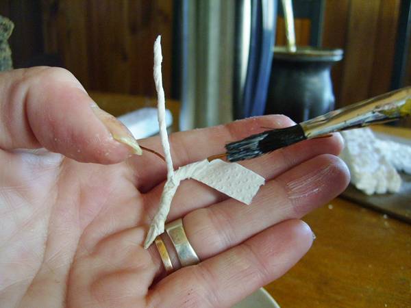 Mi gran problema ha sido el pegar el papel en los alambres, seguro que lo hago mal vereis he puesto cola en los alambres y despues he mojado el papel de cocina en cola con agua al 50%, pero no soy capaz de pegarlo bien, sera que lo hago con trozos de papel muy grandes??? podeis ayudarme???