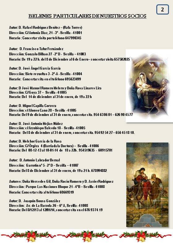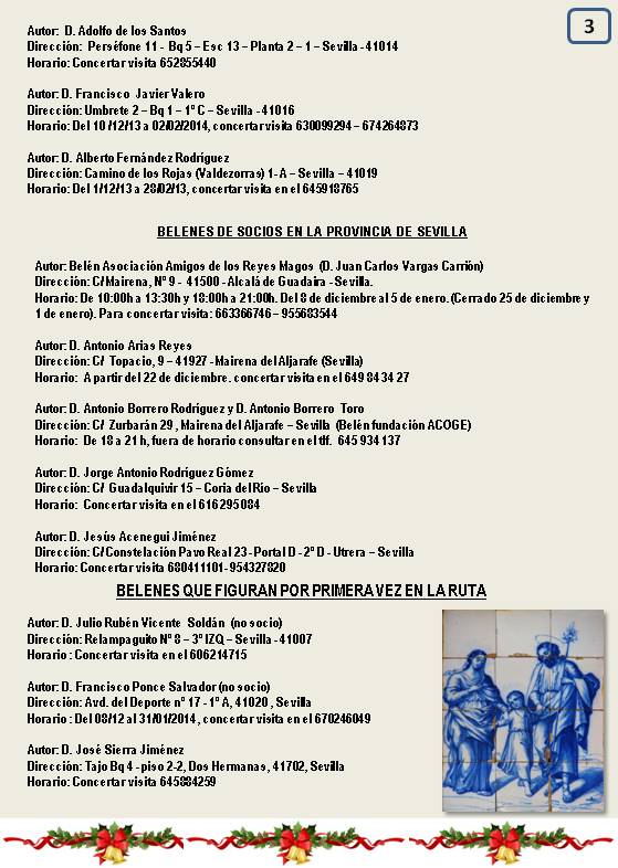 Adjunto Ruta de Belenes Artísticos, de nuestros socios, en Sevilla para la Navidad de 2013.