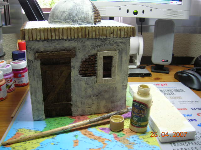 FILTROAGUADA O VELADURA: A esta fase es la que debería llamarse VELADURA. Capa de pintura muy muy diluida en agua. En la mezcla queda muy poco pigmento. Se aplica con pincel. Sirve para conseguir efectos de suciedad, moho, oxido, humedad.