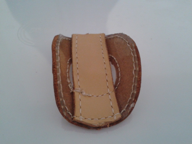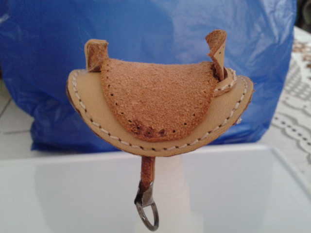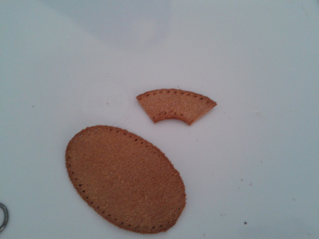 4 cortamos otro trozo de piel en forma ovalada que ira encima del circulo para que no se vea