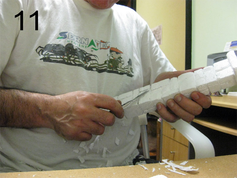 FOTO 10 : De esta manera iremos quitando lo quemado con el soldador y tallaremos cada piedra dándole la textura y profundidad deseada ,incluso rompiendo .