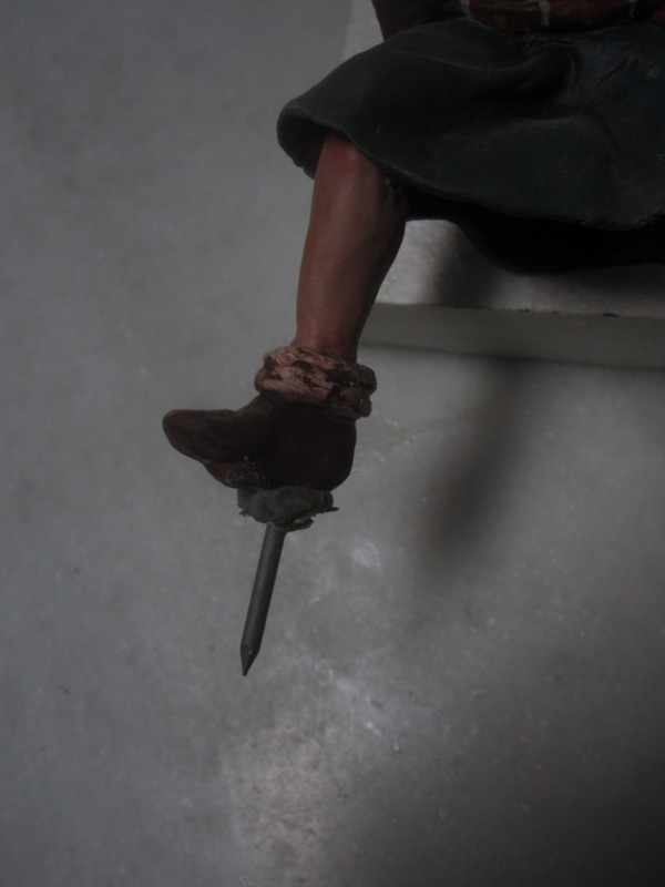 Como belenista que monta belenes me encantan las figuras " con pincho". Resulta facilisimo, una vez creada la escena " pinchar" la figura en el porex. Las posibilidades de colocar las figuras se multiplican, sin tener que procuparte de tapar peanas. Las figuras ( hablo de palillo ) cobran vida ante la posibilidad de no estar "atadas" a dos piernas.