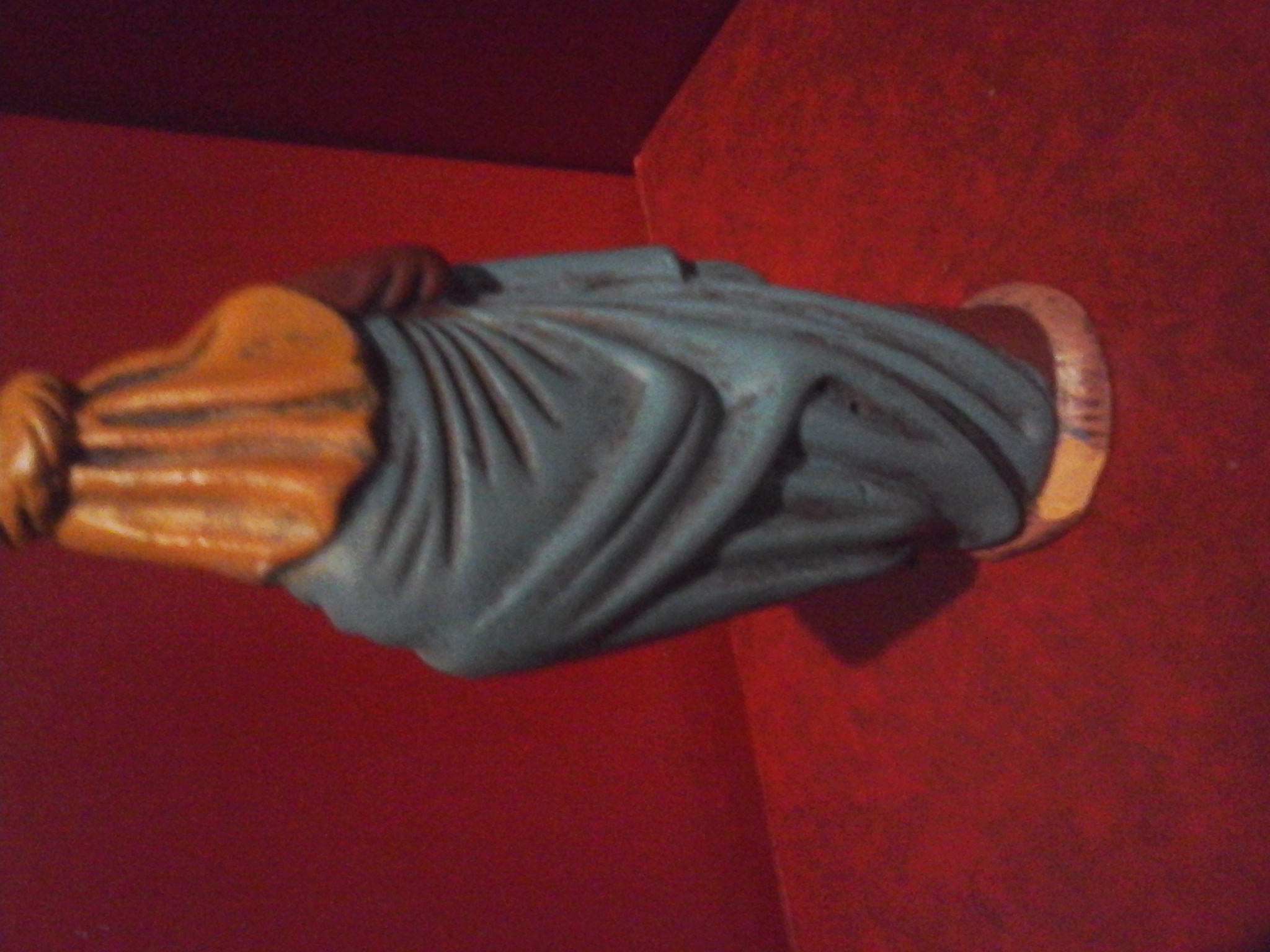 La primera figura que presentas podría ser de Ortigas, Decorarte o copia posiblemente, como deberías saber si buscas como te digo en estos autores tienen un sello distintivo... Con las fotos que subes es dificil, siempre busca si tiene firma o sello y saca foto con más detalle y tb de la peana por debajo, está tuya por esa base y la policromia de la misma tiene parecida con alguna época de los autores que te comento como esta:
