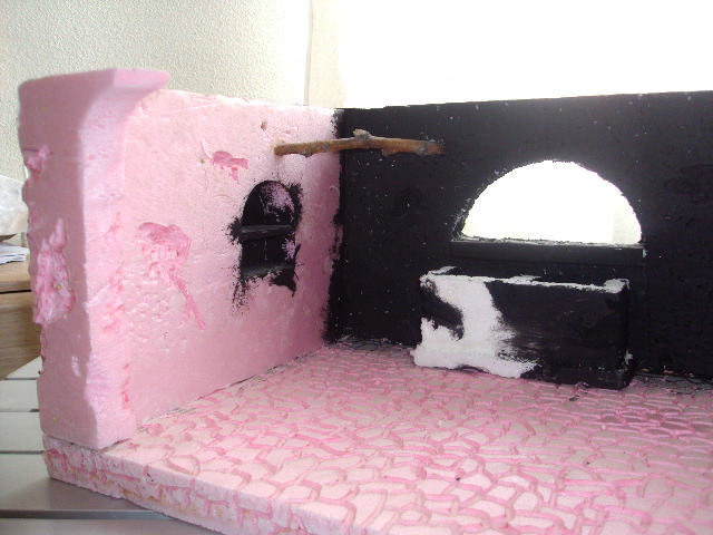 Andrés, ya sé que estoy muy verde en construcción, pero mi intención al pintar algunas partes de negro es que no se transparente el porex en el caso que le ponga luz, ahora tengo que terminar algunos detalles y luego le echaré algún tipo de mejunge como yeso,pintura de fachadas o resina. La verdad es que estoy hecha un lio. Tú que le pones al suelo o a los ladrillos para no perder la textura?