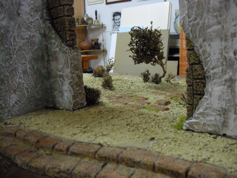 Alguna foto mas poniendo ya la tierra, pero tengo el problema que el color de la tierra es muy parecido al de las losas que se ven separadas, asi que tendre que cambiarles el color a las losas, creo que oscureciendolas un poco.