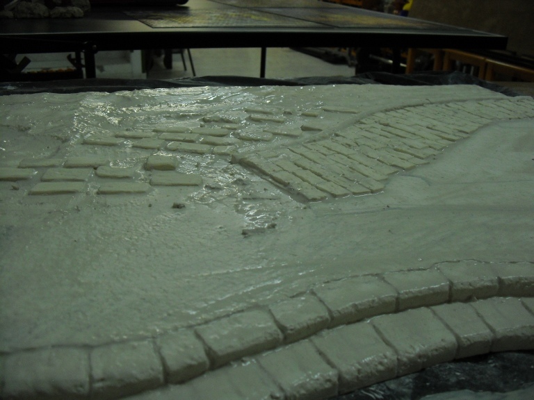 Las losas del camino si estan cortadas una por una, pegadas y despues pintadas igual que las de la calle, te pongo una foto para que veas como estaban al principio: