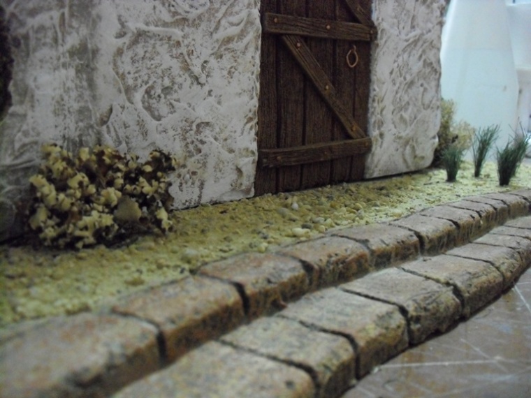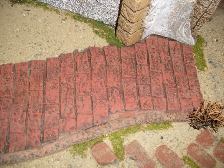Las losas del camino si estan cortadas una por una, pegadas y despues pintadas igual que las de la calle, te pongo una foto para que veas como estaban al principio:
