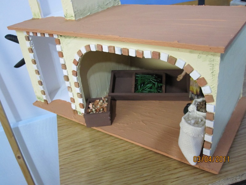 Hola bienvenida al foro, a ver yo cambiaria la figura porque es demasiado alta para esa edificación, fijate que ni se le ve la cabeza o almenos ponerla fuera de la edificación, y luego si puedes daria un pequeño barrido de blanco a todo porque no has dado veladuras y de camino un poco de humedades con agua sucia color verde caqui, saludos.