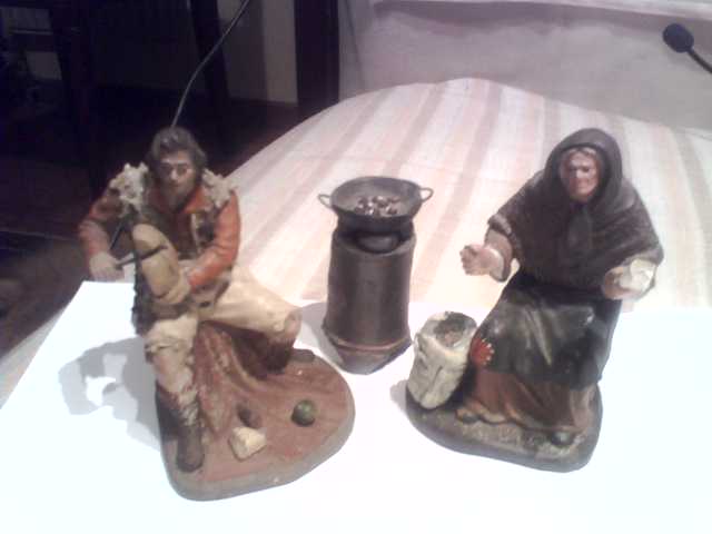 Por si eres de letras como yo y calculas mal, te pongo las figuras y algunas medidas para que te hagas una idea real. Las figuras son de 12, de Nicolás: la sarten mide 3 cm de diametro, y el pan que está cortando el pastor 2 cm, el saco de castañas que tiene junto a las piernas 3 de alto por 2 de ancho.