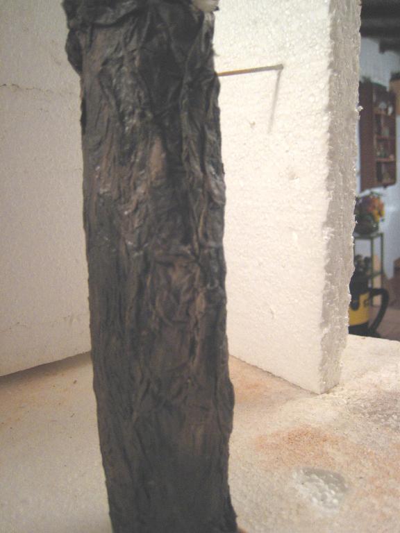 Hola amigos, el paso a paso ya lo puso mi amiga Lola yo solo voy decir donde se me ha ocurrido aplicar una de sus técnicas, concretamente la del baúl imitación a cuero. Ella lo aplico sobre una caja de madera yo lo he aplicado a un cilindro (que cada uno escoja el material cartón pvc, etc.) para imitar un árbol y concretamente la corteza, os pongo una fotografía, por supuesto es mejorable.
