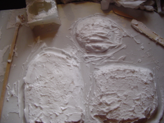 2º una vez seca la escayola y como es un material poroso unte silicona de cartucho que