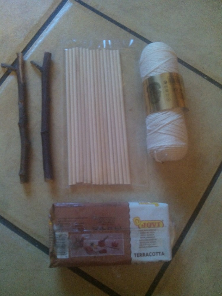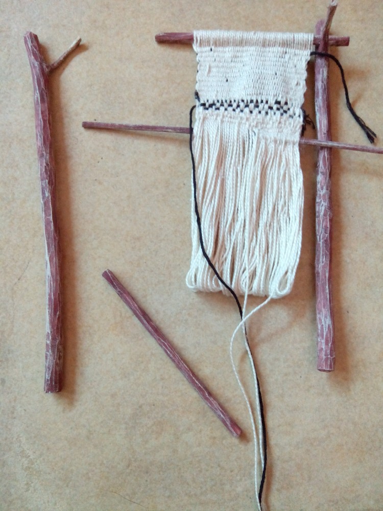 Cogemos dos ramitas que tengan un codo para poder apoyar la barra donde ira el urdimbre y las cortamos a la medida necesaria.