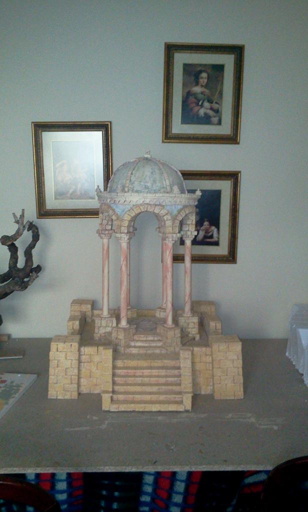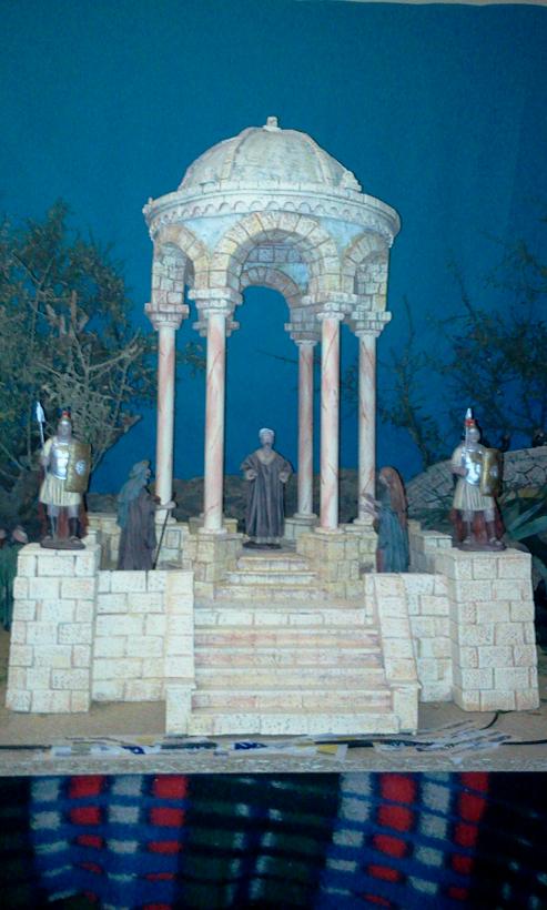 Me falta ponerle el pergamino al sacerdote que esté en el centro del templo y algo en las esquinas traseras, bien unos macetones o unos ángeles, no se, se aceptan sugerencias.