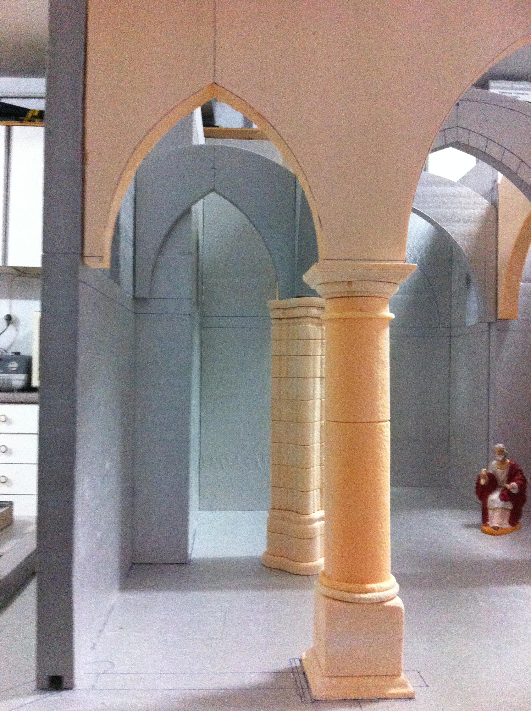 El templo esta basado tomando como referencia, la mitad del largo de la Iglesia de mi pueblo Colmenar de Oreja, que para mi es un gran reto, devido a sus dimensiones y complejidad de su construcción, con 7 bovedas por arista con linea de clave peraltada y dos de ellas estrelladas, tomando como escala 1:33 es decir 1m. = a 3,3 cm. y con unas dimensiones de construcción de 89cm de ancho, 1,15 de largo, 85 cm. alto, intentare explicar lo mejor que pueda el paso a paso, pero no soy un maestro como EMILIO espero que os guste un saludo: