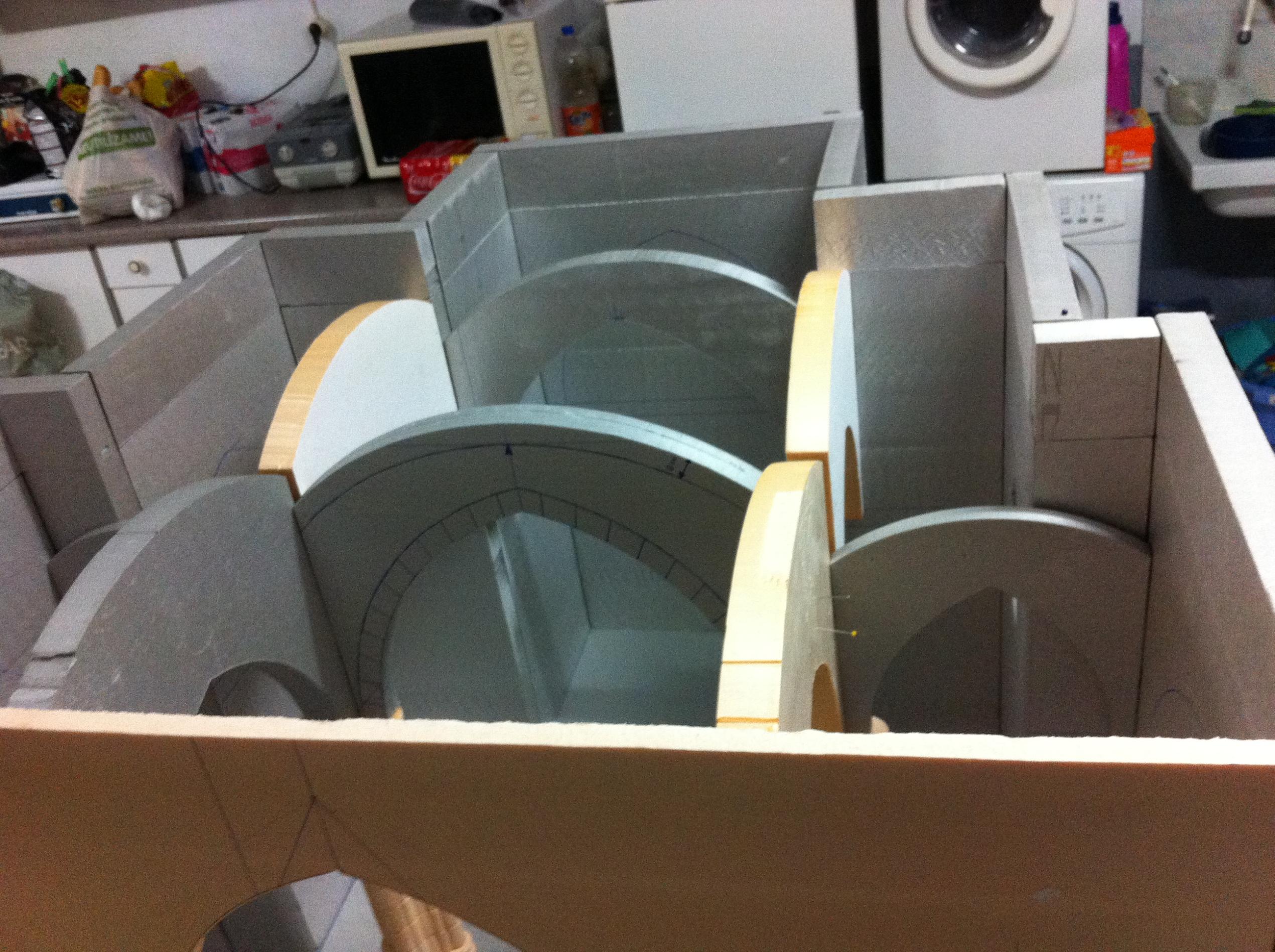 El templo esta basado tomando como referencia, la mitad del largo de la Iglesia de mi pueblo Colmenar de Oreja, que para mi es un gran reto, devido a sus dimensiones y complejidad de su construcción, con 7 bovedas por arista con linea de clave peraltada y dos de ellas estrelladas, tomando como escala 1:33 es decir 1m. = a 3,3 cm. y con unas dimensiones de construcción de 89cm de ancho, 1,15 de largo, 85 cm. alto, intentare explicar lo mejor que pueda el paso a paso, pero no soy un maestro como EMILIO espero que os guste un saludo:
