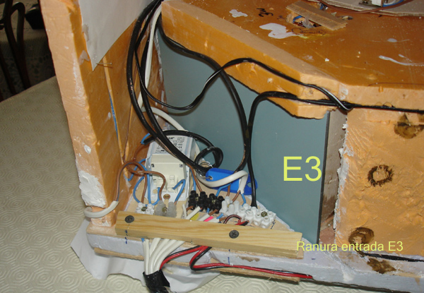 o Delante de los espejos deben colocarse elementos de restricción de tal forma que el espejo “vea” a través de huecos más o menos ajustables y no “a campo abierto”. Esto último provoca muchos disgustos, pues se encuentra uno con que el espejo “ve” lo que no se desea que vea. Esta es la función del hueco en la entreplanta entre el espejo E1 y el E2, que se observa en la foto. A su vez el extremo del hueco que mirla pueblo objeto, está pintado de acuerdo con el color del paisaje frente al pueblo, para que el corte no se vea reflejado inoportunamente.